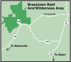 mountain. The surrounding area is the 11,000-acre Brasstown Wilderness which