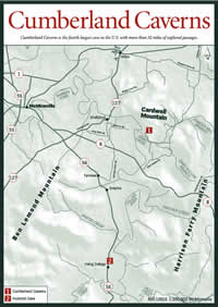 Cumberland Caverns is commercially operated, and tours provide visitors the chance to see a wide variety of formations: stalactites, stalagmites, helectites, columns, flowstone, cave coral, gypsum flowers, and other features. Also part of the tour is a dramatization of the creation of the cave in sound and light.